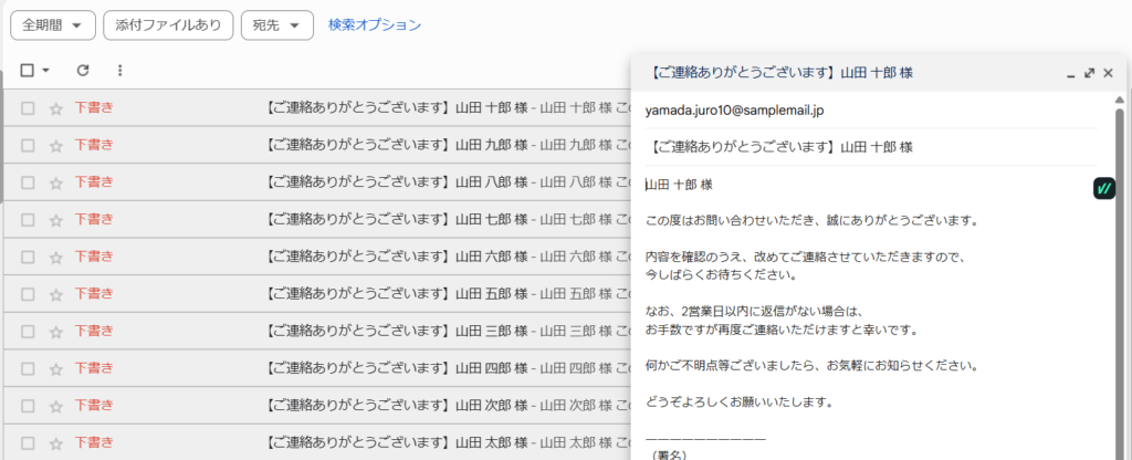 - いきなり送るのが不安でも、Gmailの下書きに保存して内容確認が可能